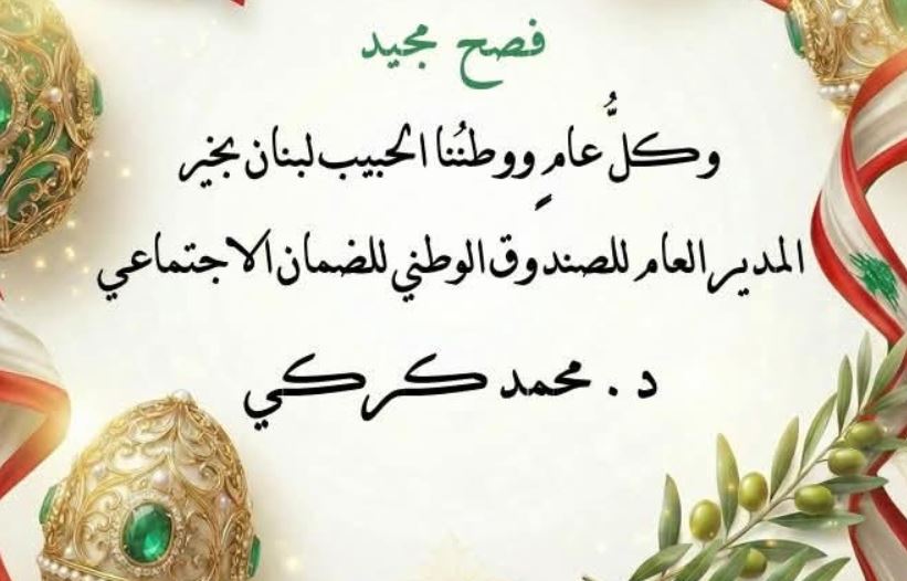 المدير العام للصندوق الوطني للضمان الاجتماعي د. محمد كركي، يتوجه إلى اللبنانيّين عمومًا، والمسيحيّين خصوصًا، بأطيب التهاني، متمنيًا أن يحمل هذا العيد المجيد بعض الراحة والطمأنينة إلى قلوبهم.