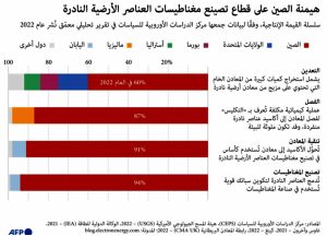 وفي عام 2024، حصلت الولايات المتحدة على 70 في المئة من المعادن النادرة التي تستخدمها من الصين و13 في المئة من ماليزيا و6 في المئة من اليابان و5 في المئة من إستونيا.
