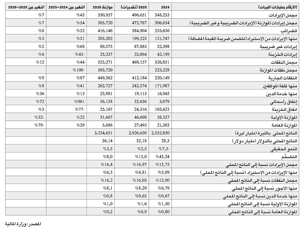 لكنها تركّز أكثر على الفوائض المالية، إذ تشير الفذلكة التي أعدّتها وزارة المال، إلى أنّ الهدف تحقيق فائض أوّلي وفائض إجمالي في نهاية السنة المقبلة كما حصل في السنتين السابقتين. وسيبلغ الفائض الأوّلي 31667 مليار ليرة (353.8 مليون دولار) في نهاية 2026 مقارنة مع فائض مقدّر في نهاية 2025 بنحو 46608 مليار ليرة (520.7 مليون دولار)، ومع فائض أوّلي في 2024 بنحو 38327 مليار ليرة (428.2 مليون دولار).