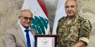 قائد الجيش قدّم درعا تقديريا إلى رئيس تجمع مزارعي وفلاحي البقاع