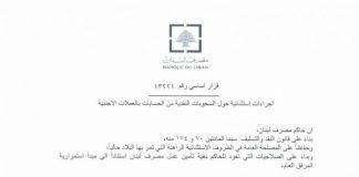تعميم لـ”المركزي”: المصارف تسدّد سحوبات الدولار بالليرة