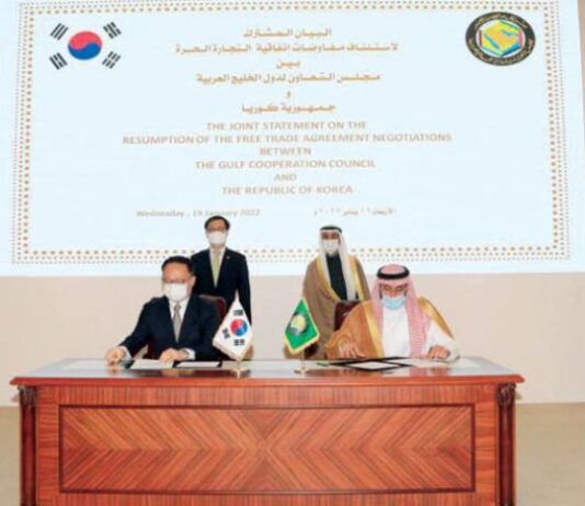 أستأنف مجلس التعاون الخليجي مفاوضات اتفاقية التجارة الحرة مع كوريا الجنوبية، في خطوة تأمل فيها دول المجلس وسيول لفتح آفاق واسعة للتعاون التجاري والصناعي،...