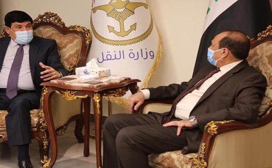 بحث وزير النقل العراقي ناصر حسين بندر الشبلي وسفير سورية لدى بغداد صطام جدعان الدندح سبل الارتقاء بالتعاون في مجالات النقل والربط السككي بين...